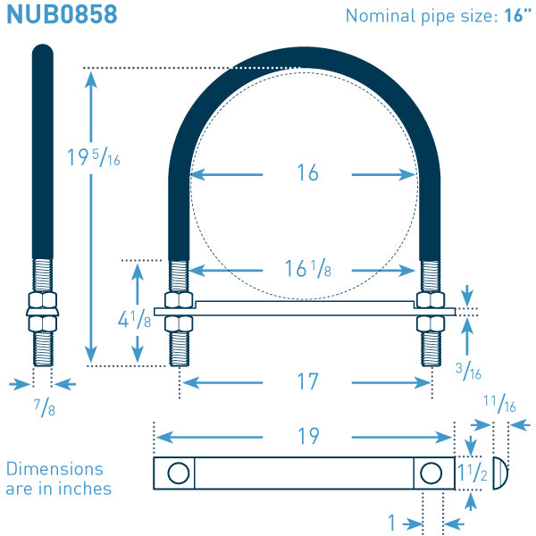 U-Bolt Size: 16 in NPS x 0.875 in bolt stock