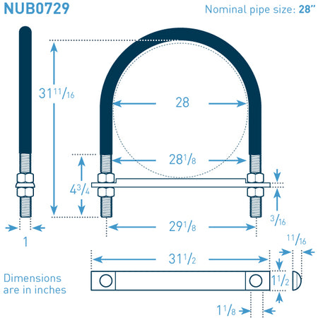 U-Bolt Size: 28 in NPS x 1 in bolt stock