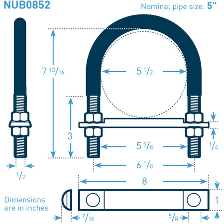 U-Bolt Size: 5 in NPS x 0.5 in bolt stock