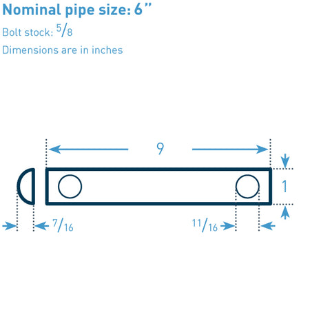 - Fits standard 6 inch Nominal pipe U-bolt, 5/8 Stock