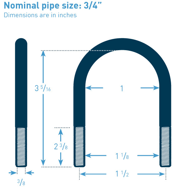 U-Bolt Size: 0.75 in NPS x 0.375 in bolt stock
