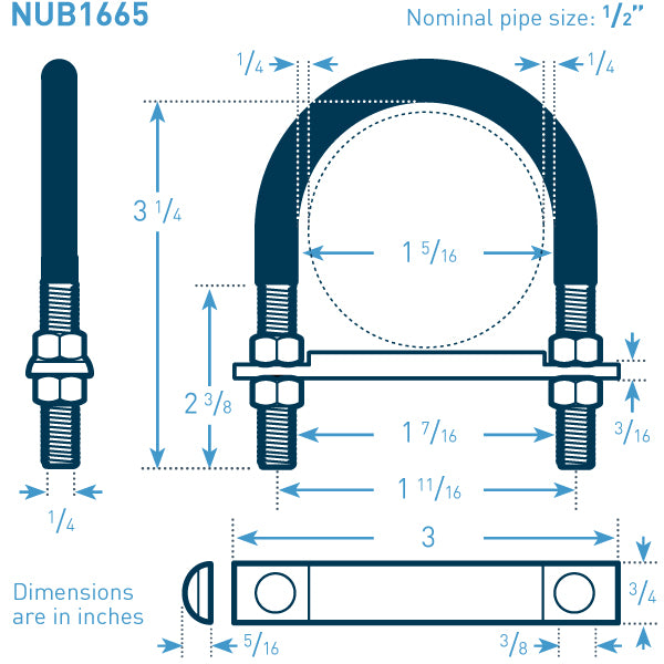 U-Bolt Size: 0.50 in NPS x 0.25 in bolt stock XL (0.25 in space around pipe)