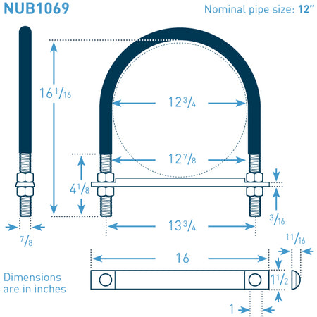 U-Bolt Size: 12 in NPS x 0.875 in bolt stock