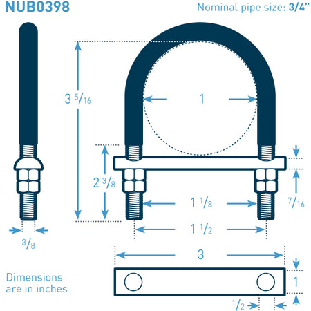 U-Bolt Size: 0.75 in NPS x 0.375 in bolt stock