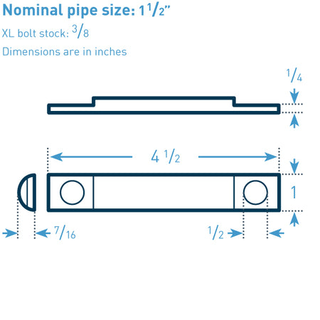 U-Bolt Size: 1.50 in NPS x 0.375 in bolt stock XL (0.25 in space around pipe)