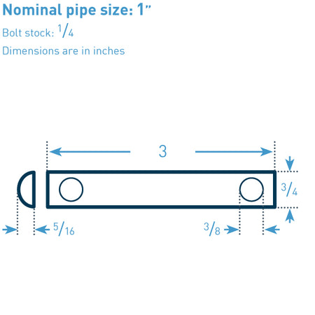 - Fits standard 1 inch Nominal pipe U-bolt, 1/4 Stock