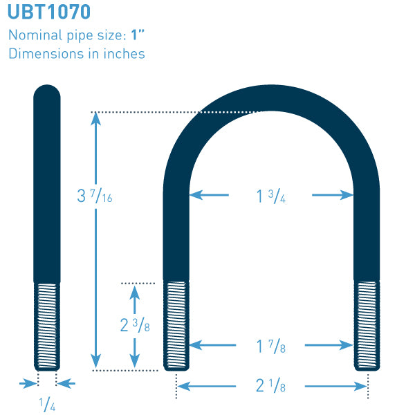 U-Bolt Size: 1 in NPS x 0.25 in bolt stock XL (0.25 in space around pipe)