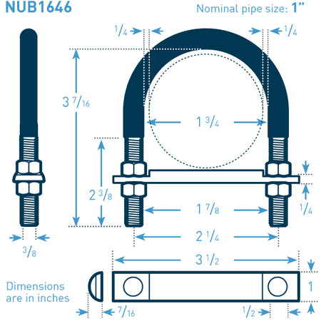 U-Bolt Size: 1 in NPS x 0.375 in bolt stock XL (0.25 in space around pipe)