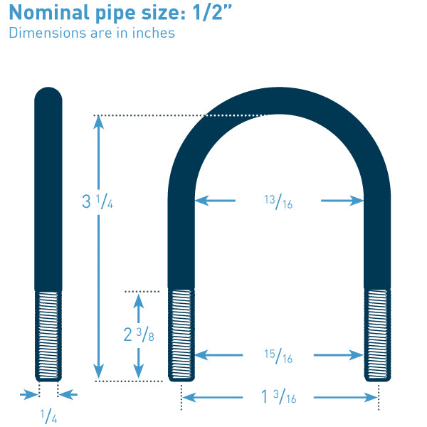 U-Bolt Size: 0,50 pol. NPS x 0,25 pol. ferrolho