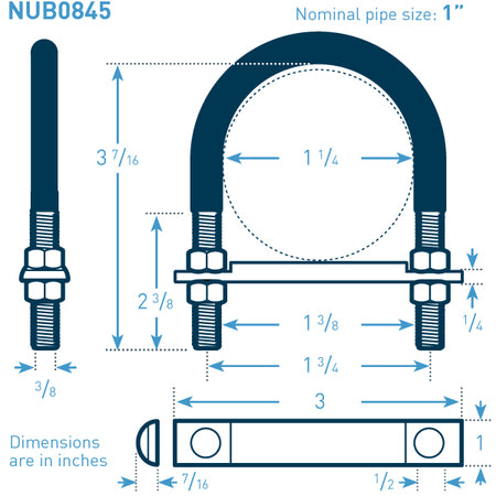 U-Bolt Size: 1 em NPS x 0,375 em estoque de parafuso