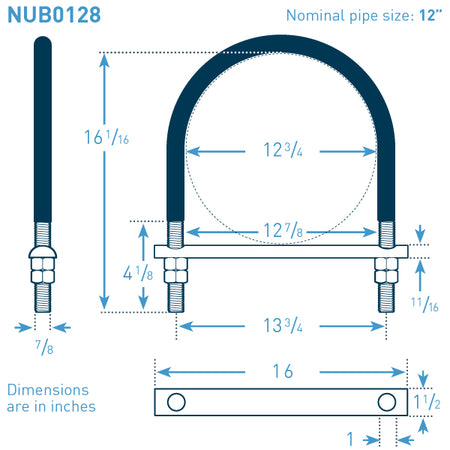 U-Bolt Size: 12 pol. NPS x 0,875 pol. estoque de parafuso