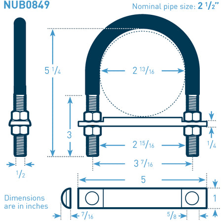 U-Bolt Size: 2,5 pol. NPS x 0,5 pol. estoque de parafuso
