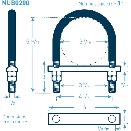 U-Bolt Size: 3 pol. NPS x 0,5 pol. estoque de parafuso