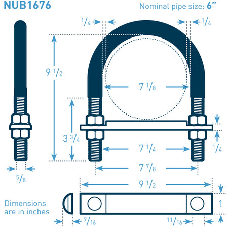 U-Bolt Size: 6 pol. NPS x 0,625 pol. Parafuso XL (0,25 pol. de espaço ao redor do tubo)
