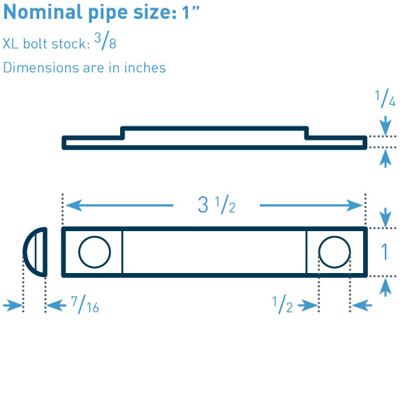 U-Bolt Size: 1 pol. NPS x 0,375 pol. Parafuso XL (0,25 pol. de espaço ao redor do tubo)