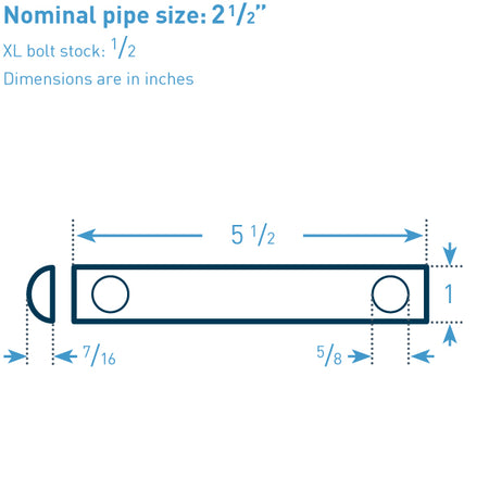 U-Bolt Size: 2,50 pol. NPS x 0,5 pol. Parafuso XL (0,25 pol. de espaço ao redor do tubo)