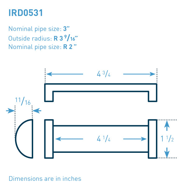 Clipe I-Rod para tamanho de tubo 3 polegadas - comprimento total 4-3/4 polegadas - Comprimento da folga interna 4-1/4 polegadas - raio externo R3-9/16 - raio interno R2 - altura 11/16 polegadas 3M Dupla face fita presa ao longo do interior