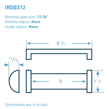 Clipe I-Rod para tamanho de tubo 12-36 polegadas comprimento total 8-1/2 polegadas - Comprimento da folga interna 8 polegadas - SEM raio externo - SEM raio interno - altura 11/16 polegadas Fita dupla face 3M fixada ao longo do interior