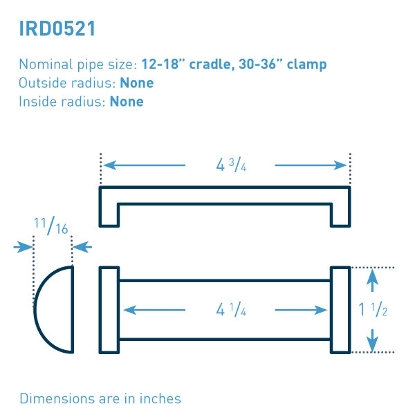 Clipe I-Rod HT para tamanho de tubo 12-18'' CRDL e 30-36'' CLMP - comprimento total 4-3/4'' - Comprimento da folga interna 4-1/4'' - SEM raio externo - SEM raio interno Fita dupla face 3M de altura 11/16'' fixada ao longo do interior
